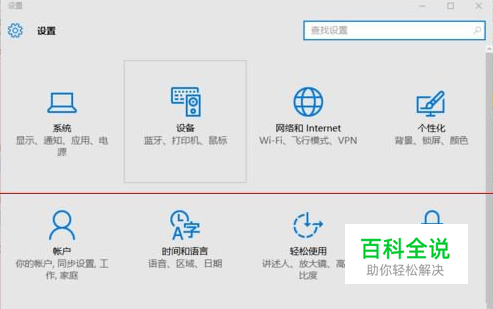 进入系统后,点击“开始”菜单,选择“设置”。或者输入快捷键“Win+I”进入设置界面,并点击“设备”。