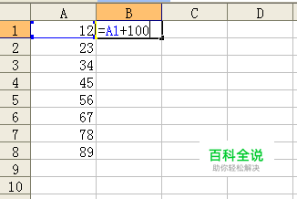 如图举例,假如要对A列同时加上相同的数字100的操作方法如下: