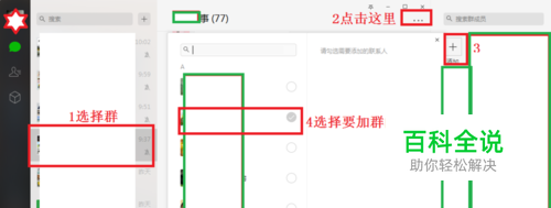如果还没有建群,点击搜索框旁边的+号——勾选需要加群的好友——点击确定就可以同时建群并拉人进群了。