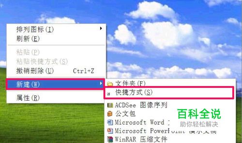 此方法是自已制作一个快捷启动的快捷方式,当人要离开电脑时,只要点击快捷方式,或者按一个键,就能启动屏幕保护程序。 制作方法,先在桌面空白处右键,然后从右键菜单中选择“新建”子菜单中的“快捷方式”这一项。