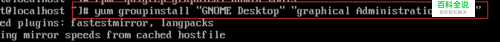 安装Gnome包组,命令如下 :yum groupinstall "GNOME Desktop" "Graphical Administration Tools",因为安装的时候选择是最小化安装,并且是新装的系统,需要安装的包比较多,要耐心等待