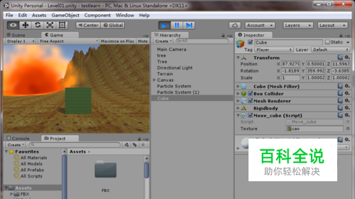 把 Move_cube脚本附加到Cube立方体上面,别切把贴图图片放入Texture中。