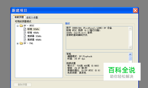 启动premiere 7,选择新建项目,选择预设模式为标准32khz,进入主界面。