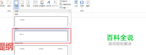 在下拉菜单中找到我们需要的页眉类型,如下图,就是我们需要的空白页眉,当然,页眉内的内容我们还可以编辑。