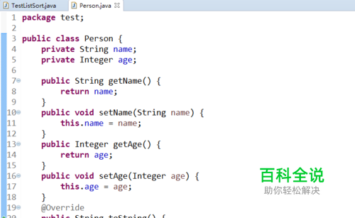 新建一个Person类,这里测试用到两个属性,name和age 重写toString方法方便调试