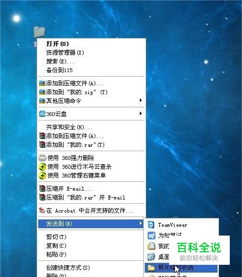 最后,把你第一步,第二步创建的快捷方式放到“SendTo”文件夹里,这时,我们再任意选择一个文件,然后右键,我们就能在发送里,看到我们设置的这个文件夹,我们就可以快速地把文件放到这个常用的文件夹里。