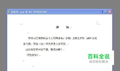 当我们打印好一份通知后,盖好公章后,突然发现有些文字要加上或去,在不方便重新打印的情况下,我们可以通过PS来修改。下面我看下怎么操作比较好。