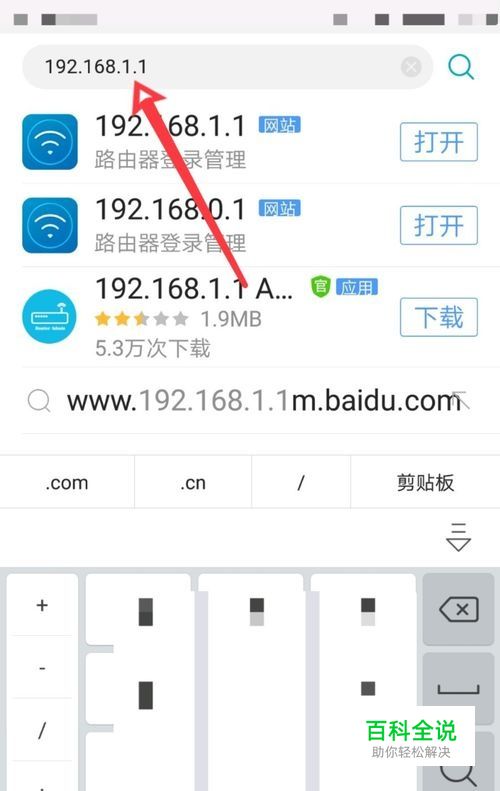 在手机浏览器内输入”192.168.1.1“,点击进入。