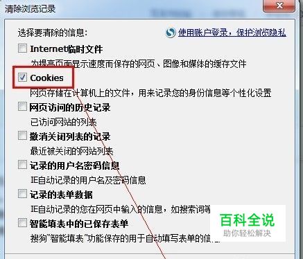 在清除浏览数据小窗口中,可以选择清除指定时间段内的数据。 勾选删除cookies选项。 清除浏览数据。
