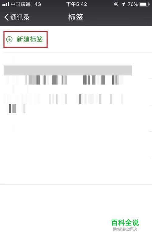 点击上方的“新建标签”选项。在这里对通讯录进行分组设置。