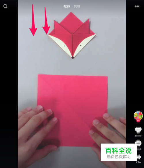 那么我们所说的直播在那里看呢?我们在抖音播放视频的界面上方用手指轻轻的向下划动,如下图所标识的方向