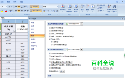 所中需要去除单元格位0.00的列或者行,找到excel选项