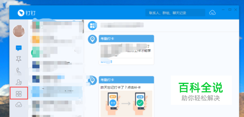 登录钉钉(以电脑版为例),点击左侧的“工作”(四个方块那里)。