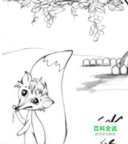 选择自己喜欢的PS里的笔触,或者是自己设的感觉好用的笔触,我的是钢笔不透明描边儿那个,然后又调了一下。给葡萄是酸的那个儿童小故事,画了一个小画画,先用黑色和这个笔触画一个线描。