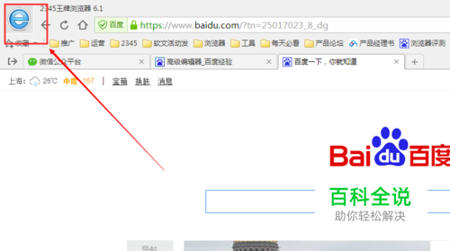 如果是从2345王牌浏览器端登录账号,则首先打开2345王牌浏览器,点击左上角“登录入口”图标登陆我的账号: