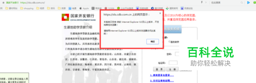 这里以国家开发银行助学贷款信息网为例,该网站只能用IE浏览器才能正常登录使用,当我们用极速模式点击进入登录的时候会弹出不能使用的提示