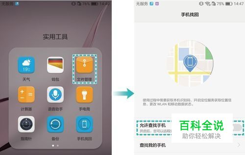 点击系统应用【手机找回】,然后打开【允许查找手机】,登录华--为账号,开启手机找回功能。