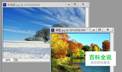 首先,利用PS同时打开两张图片,如图所示: 建议给两张图片分别命名,以便于操作处理。