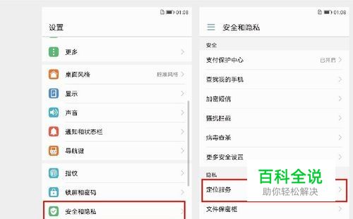 点击【安全和隐私】 > 【定位服务】。