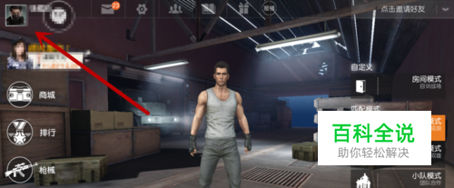 首先我们进入到荒野行动游戏界面,点击左上角的头像,如图所示。