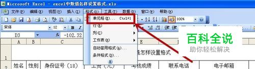 选择格式菜单上的单元格命令,显示单元格格式对话框。
