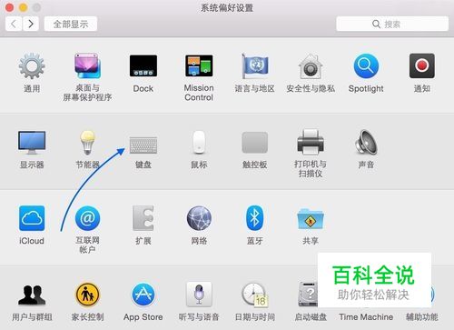 在系统偏好设置窗口中点击打开 “键盘”图标,如图所示