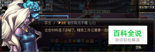 首先我们找到莎兰领取任务--“制作降龙手镯”,完成任务需要有“混沌魔石的碎片”和“最下级砥石”两和物品,这两样物品可以通过拍卖行获取。