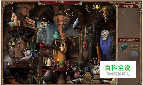 跟随提示找到第一件物品,剩下三件物品 如图所示,收集完毕后,依照提示将物品放回原位,在指导手册中得到提示,将 酒瓶交给鬼魂。