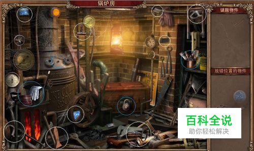 进入锅炉房,四件物品 如图所示,收集完毕后,放到对应的 篮圈标识位置,得到 幽灵装置, 进入下一关。