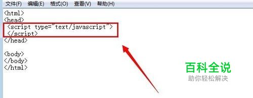 在<head>头标签后输入<script>标签 <script type="text/javascript"> </script>