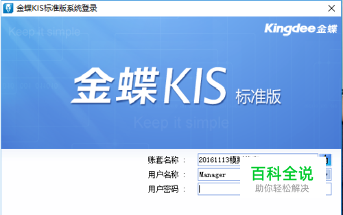 打开金蝶kis标准版。 操作软件前,确认数据库服务器是运行的。