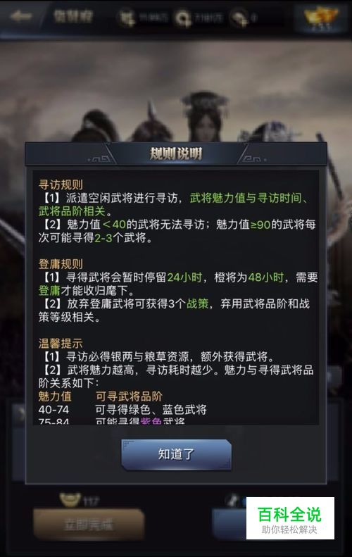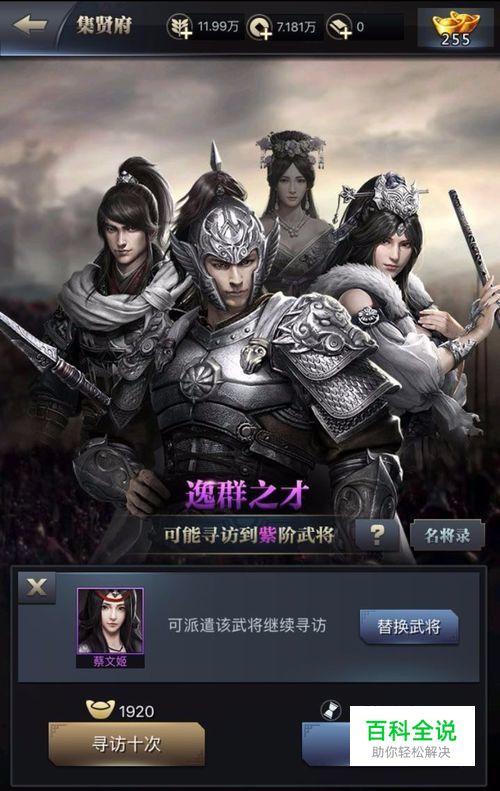 魅力是关键: 怎么可以找到橙将、紫将呢?我们需要先提升,选用魅力值比较高的武将,然后去进行寻访。