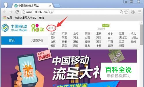 首先打开10086移动电话网上营业厅,选择移动手机号码所在省份。