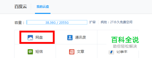 进入到个人的百度中心,在页面的最下方,点击打开网盘