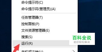 右击桌面左下角的“Windows”按钮,从弹出的右键菜单中选择“运行”项,以打开“运行”窗口。
