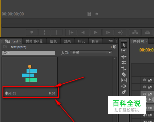 如图,接着字幕就会在序列的旁边,我们拖到视频轨道那里去。