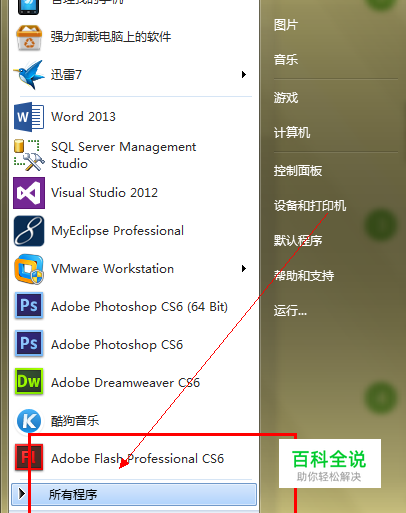 在开始菜单中选择所有程序,在所有程序中有一个Apache Tomcat…… 的文件夹。单击展开。