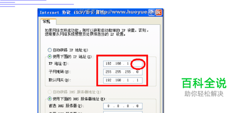 本地连接里--属性--Internet协议--属性把自动获取IP改为使用下面的IP地址然后在第一行里添上192.168.1.2---255中任意数字第2行填255.255.255.0第3行添192.168.1.1