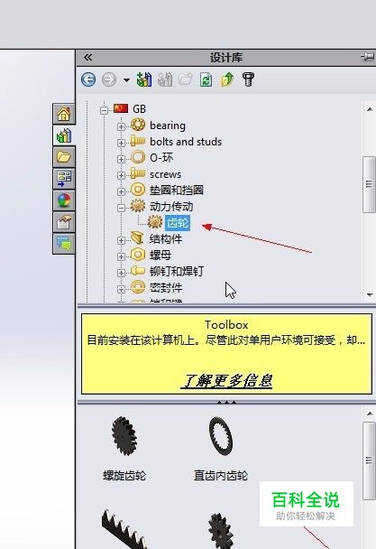 ,打开solidworks,打开toolbox插件选择齿轮。