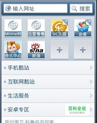 打开Ucweb浏览器之后,用手指触摸屏幕之后,向左滑动,即可打开导航窗口: