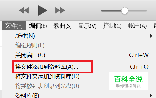 首先,打开iTunes,点击【文件】-【将文件添加到资料库】,将要制作为铃声的音乐添加到iTunes