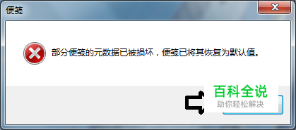 故障现象,开机弹出提示: 部分便签的元数据已被损坏,便签已将其恢复为默认值。