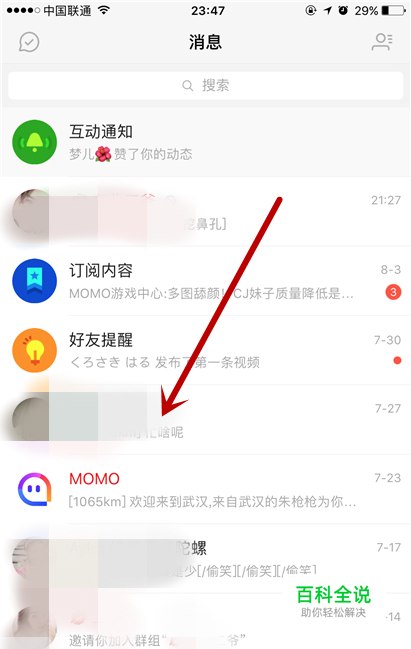 进入到陌陌的主页,点下面的消息内容。