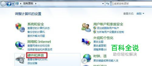 单击‘硬件和声音’