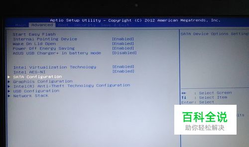 这个是华硕的blos。进入以后选择advance组。选择SATA开头的。如果是其他主板,选择有SATA字眼的即可