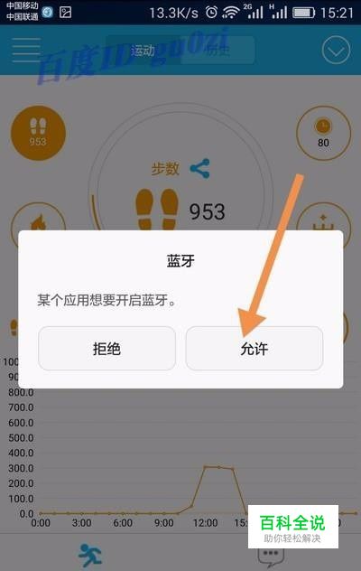 下载智能手环对应的应用,安装后打开.还未进行连接的时候,会提示, 开启蓝牙,此处点击 允许.