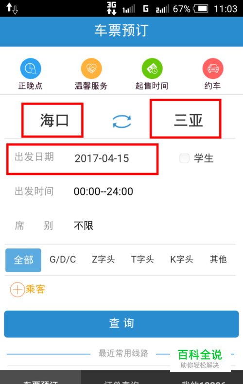 打开12306手机客户端,选择 出发地、目的地和乘车日期等信息,然后点击“查询”。