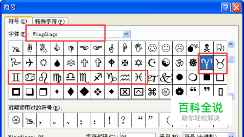 选择“windings”,里面有现成的十二星座符号,选中自己喜欢的就好。然后调整字号即可。