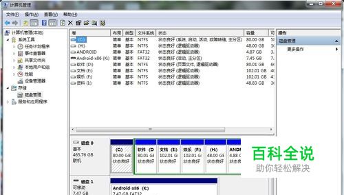 首先,要为安卓系统在电脑上建立一个新的磁盘分区: 1、打开控制面板,选择“管理工具”,双击打开“计算机管理”; 2、单机选择存储下的“磁盘管理”; 3、选择一个剩余空间比较大的磁盘(这里选的是H盘),右键选择“压缩卷”; 4、输入压缩空间量5000(这里填3000-5000都行),点击“压缩”,得到4.88G的可用空间; 5、右键选择“新建简单卷”,一路单击“下一步”,文件系统选择“FAT32”,格式化,完成后得到“新加卷”。