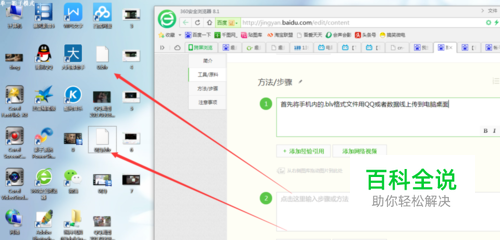首先将手机内的.blv格式文件用QQ或者数据线上传到电脑桌面
